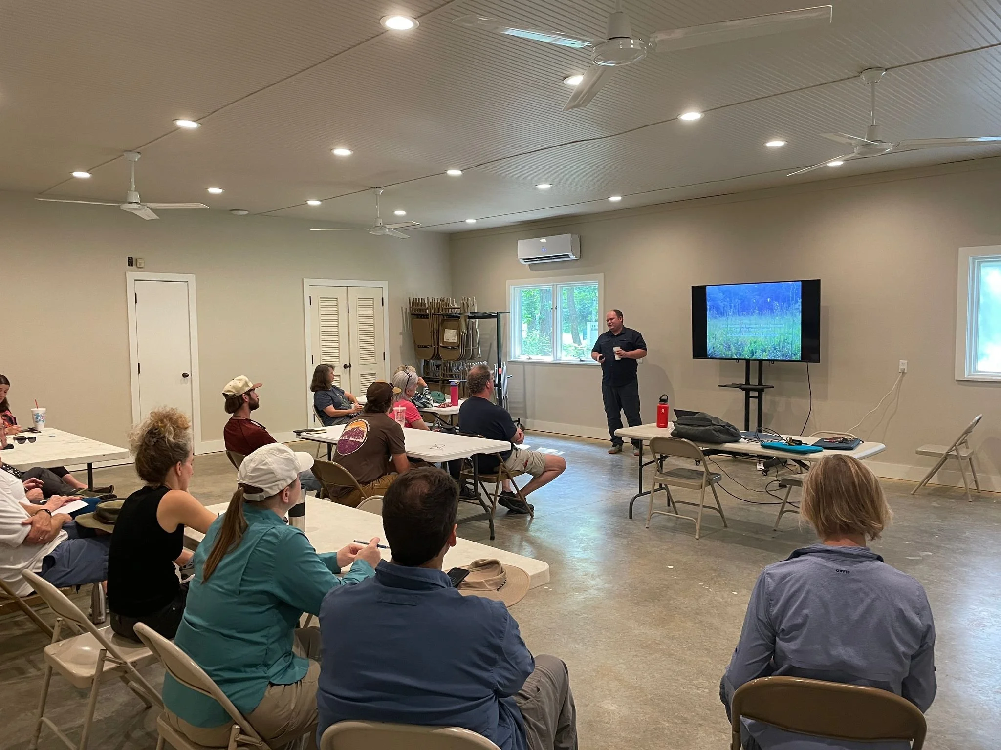 In June, twenty interested landowners joined together at the Reflection Riding Arboretum & Nature Center in Chattanooga to learn more about how they could have an impact on their own property. Irick led a presentation that first defined native healthy grassland types in this area and introduced the need for conservation and restoration. In a classroom setting, he outlined key species all in an effort to point out what species and grassland types landowners can try and identify on their land.