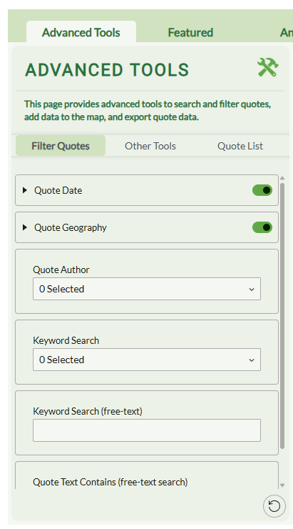 The History Explorer will allow for the search of historical quotes, maps, and other primary resources using key words on topics including animals, plants, water, ecosystems, grazing, culture, land change. Searches are also possible using an interactive ArcGIS mapping feature.