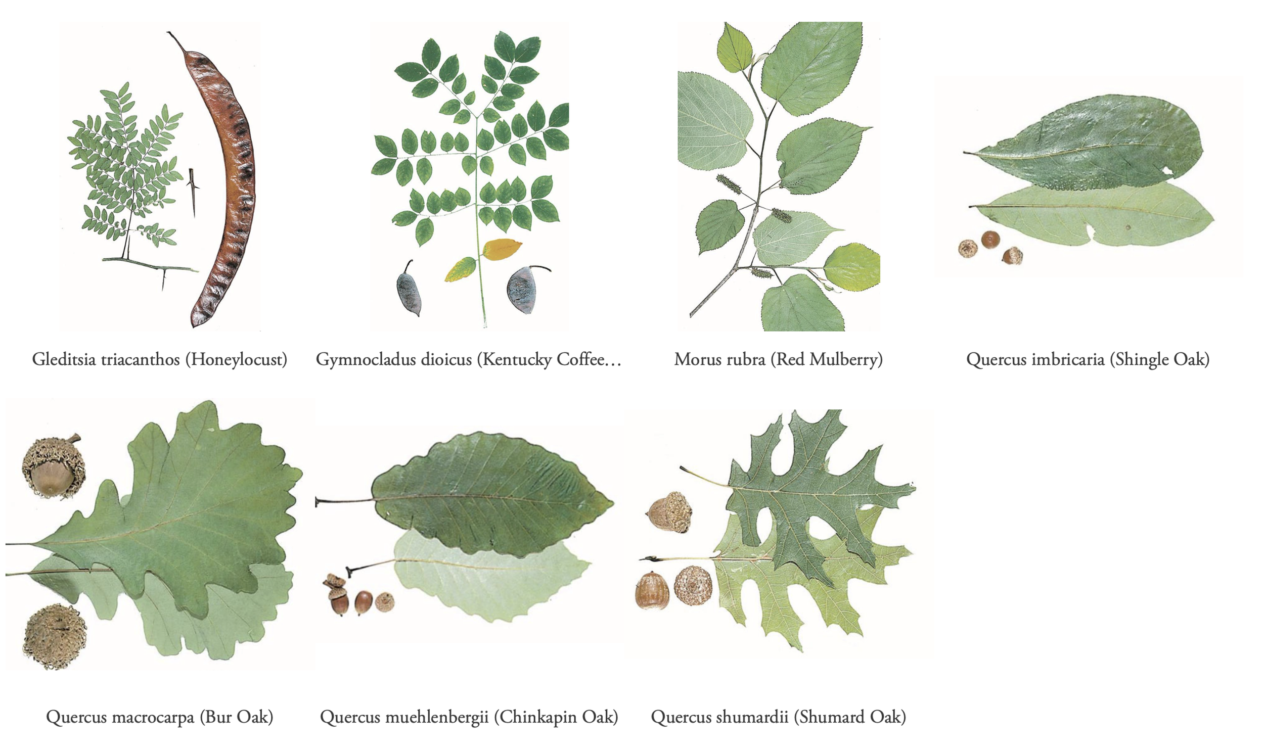 Planting select species of native trees such as Bur Oak (Quercus macrocarpa), Chinquapin Oak (Q. muehlenbergii), and Kentucky Coffeetree (Gymnocladus dioicus).