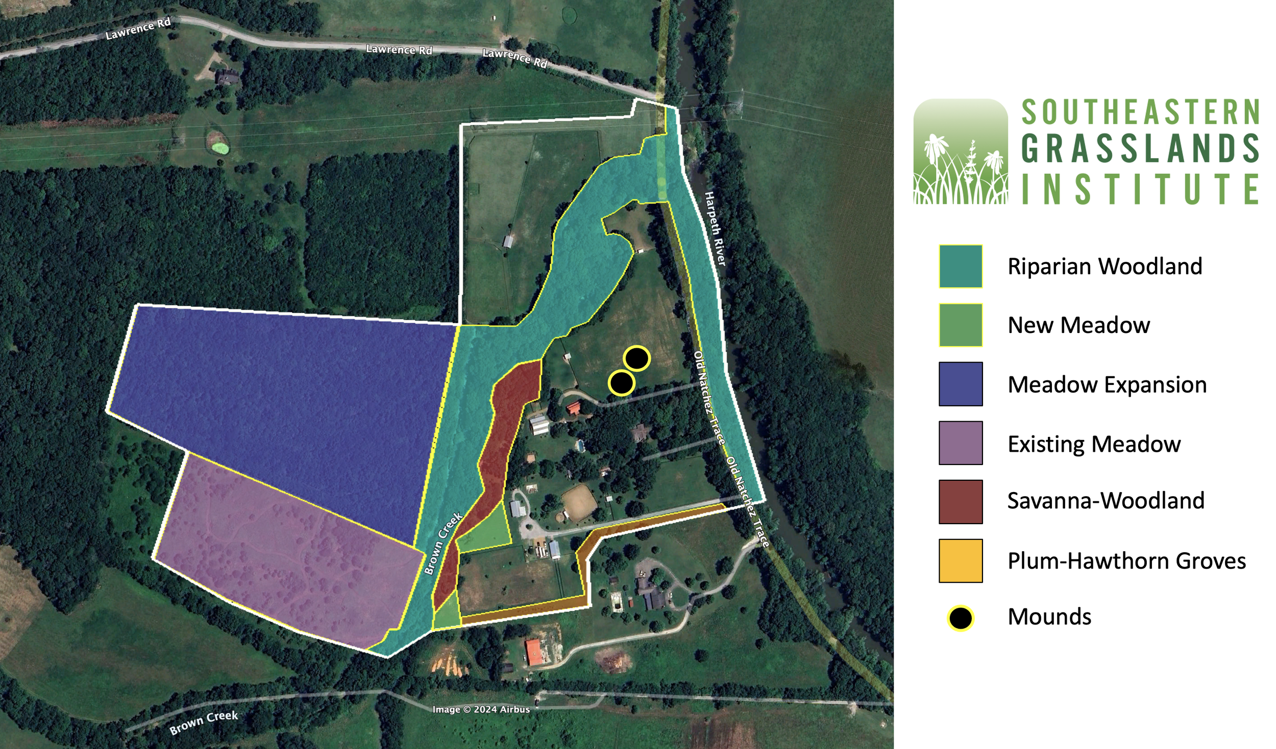 Old Town is a historical Mississippian-era Native American village along the Harpeth River in Williamson County, Tennessee northwest of modern-day Franklin near the northern terminus of the Natchez Trace. Records in the region show that indigenous peoples have lived in the Harpeth River Valley for more than 10,000 years. Old Town flourished between AD 1050 to ca. 1450, but was abandoned at least 230 years before the first French trappers visited the region in the late 1600s and 310 years before the first Anglo-American settlers arrived in the 1760s. Today, the 41-acre Old Town Farm embraces much of the historic town. Bill and Tracy Frist, present owners, have focused on conserving and preserving the cultural and natural history of Old Town. To complement the attention given to the cultural resources of Old Town, SGI proposes an indigenous-led effort to restore the natural resources of the farm, focusing on restoring and enhancing its wonderful meadows, wild plum thickets, savannas, and woodlands, and bringing back lost ecosystems such as canebrakes that were once abundant. Restoration of these natural ecosystems would not only help restore the cultural integrity of Old Town, but would also help to boost biodiversity and enhance the farm’s educational and outreach potential.